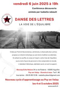 Lors de cette conférence ouverte à tous, Isabelle Jubault vous invite à explorer la Voie de la Gestuelle des Lettres, créée par Patrick Burensteinas, alchimiste reconnu.