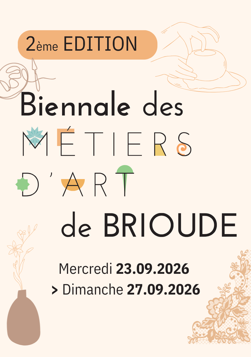 Après le succès de sa première édition, la Biennale des Métiers d’Art de Brioude revient du 23 au 27 septembre 2026 !