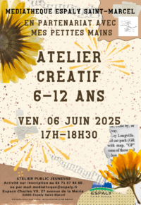 Atelier 6-12 ans. Inscription conseillée au 04 71 07 94 60  ou par mail mediatheque@espaly.fr