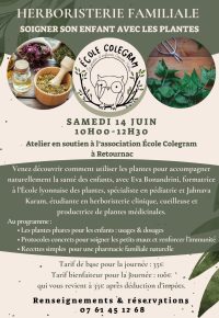 Cet atelier est organisé en soutien à l’ Ecole Colegram – Jardin d’enfants Coucou Hibou, l’école dans la forêt de Retournac et sera animé par Eva Bonandrini, spécialiste en plante et pédiatrie, enseignante à l’école Lyonnaise des Plantes et autrice pour Terre vivante, et Jahnava, étudiante en herboristerie clinique et productrice de plantes médicinales.