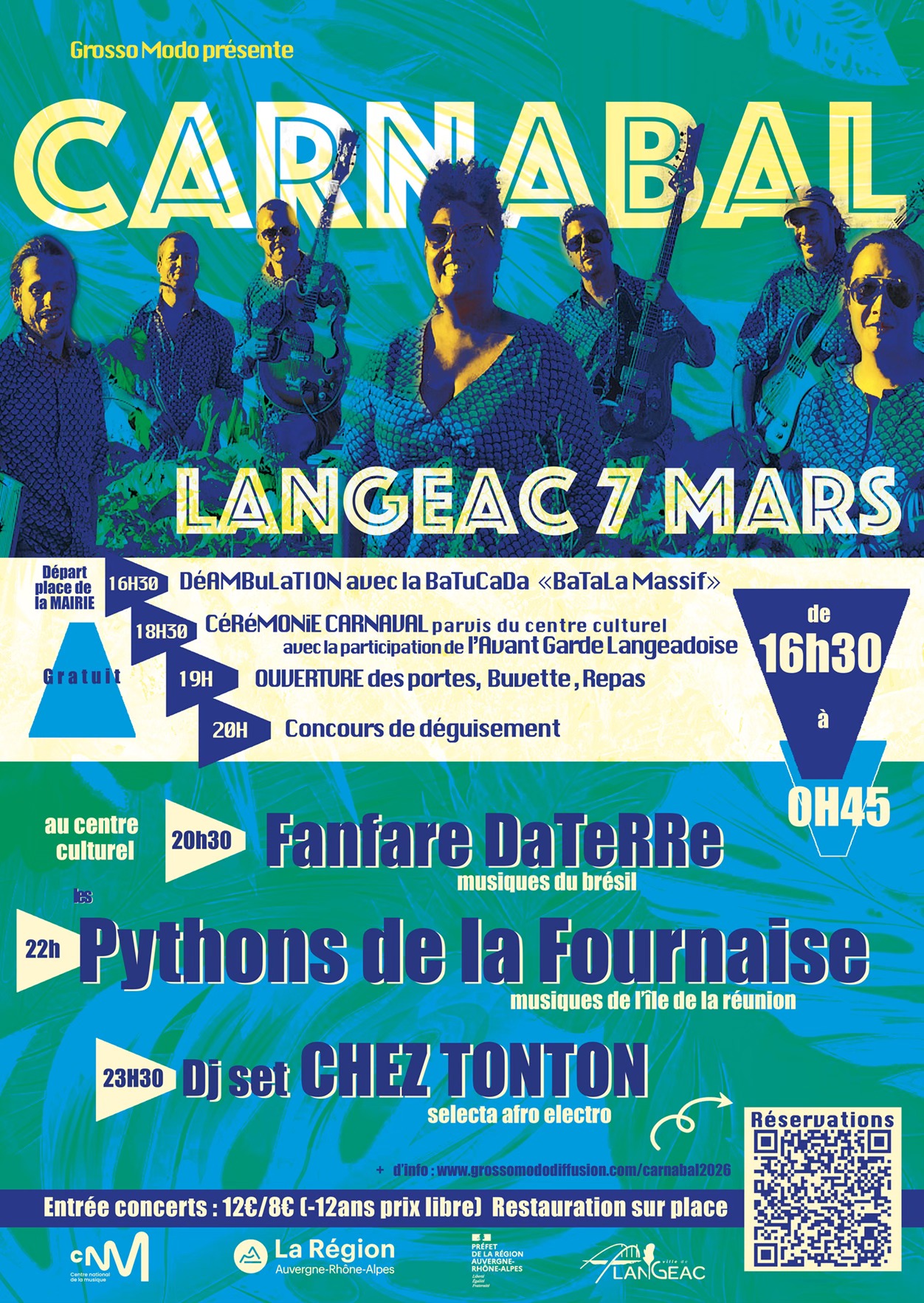 16h30 – Parez-vous de vos plus beaux costumes pour le défilé du CarnaBal dans les rues de Langeac! – rdv place de la mairie pour le défilé au son de La Batala Massif