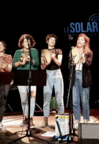 Un groupe de filles qui font trembler les murs de leurs voix et de leurs percussions pour nous partager la musique si énergique qu’est la musique galicienne…