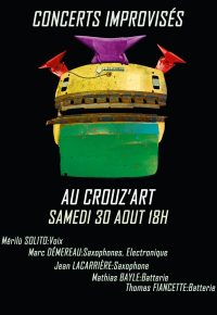 Batteries, Saxophones, Percussions, Textes rencontrent le Crouz’art, ses recoins, ses artisans, et tissent un parcours de musiques et textes improvisés in situ