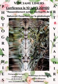 inciane Liners, photographe d’Art Spirit & Géobiologue vous invite à sa prochaine conférence le vendredi 10 juin 2022 à 20H00 à la médiathèque de Chaspuzac. Elle vous expliquera son parcours, ses activités de photographe des Esprits de la Nature et de géobiologue. La géobiologie étudie l’impact de l’environnement sur le vivant. Vinciane harmonise les lieux et les êtres en s’appuyant sur cette technique et en faisant confiance à son intuition et son instinct. A travers son regard, les images classiques de la Nature révèlent un autre monde, invisible à nos yeux et nos sens jusqu’à ce que l’on ouvre nos perceptions. Alors se dévoilent les Esprits de la Nature, Venez écouter Vinciane raconter une histoire, son histoire… Vendredi 10 juin à 20H00, Médiathèque de Chaspuzac (tél : 04.63.84.99.41) Vinciane Liners, photographe d’Art Spirit & Géobiologue Exploratrice de l’invisible 07 82 35 86 25 www.vincianeliners.com