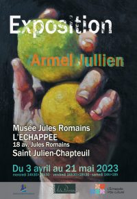 Du 3 avril au 21 mai le Musée Jules Romains présente une exposition du travail d’Armel JULLIEN, des œuvres récentes en majorité.