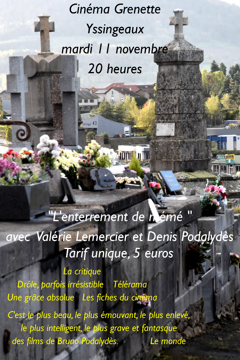 Dans le cadre de la quinzaine autour de la mort sera présenté le film « Adieu Berthe ou l’enterrement de mémé » avec Bruno Podalydès et Valérie Lemercier.
