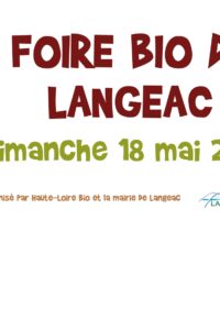 La foire bio de Langeac se déroulera le dimanche 18 mai de 9h30 à 18h sur l’Île d’Amour à Langeac.