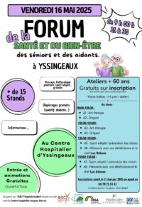 Un forum sur la santé et le bien-être pour les séniors et les aidants aura lieu le vendredi 16 Mai au Centre hospitalier Jacques Barrot à Yssingeaux de 9 h à 16 h 30.