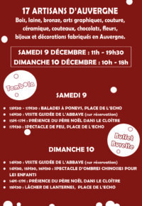 𝟏𝟕 𝐚𝐫𝐭𝐢𝐬𝐚𝐧𝐬 𝐝’𝐀𝐮𝐯𝐞𝐫𝐠𝐧𝐞 présenteront leurs créations bois, laine, bronze, arts graphiques, couture, céramique, coutellerie, chocolats, fleurs séchées, bijoux et décorations.