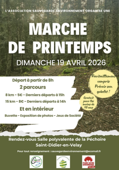 Venez marcher en ce mois printanier ! L’association Sauvegarde Environnement organise une marche dans la campagne de Saint-Didier-en-Velay.