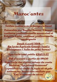 Dans le cadre de l’action Découverte Région, intitulé « Passeport pour la Francophonie », une soirée contée est proposée le jeudi 4 avril à partir de 19h30 au Lycée George Sand (Petit Forum.). Cette veillée, tout public est gratuite.