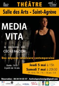 Comment être « au milieu de la vie » (media vita), c’est-à-dire en son cœur, quand toutes les activités humaines semblent nous priver de toute possibilité de vie intérieure ? Comment entendre encore le silence quand le monde bavarde ? Comment trouver la sérénité alors que notre condition humaine nous voue à la finitude et qu’elle est traversée par des tragédies politiques, par les soubresauts de l’Histoire ? Comme une odyssée intérieure contemporaine, ce seule-en-scène plonge le spectateur dans les pensées et les émotions d’une femme au mitan de sa vie. De son propre jardin à ses déplacements à l’étranger ou dans des villes françaises, elle fait apparaître le paradoxe de notre monde contemporain : un monde bétonné et synthétique, assujetti à la reconnaissance faciale, alors que s’exprime plus que jamais le besoin fondamental de conserver un espace vital d’intimité et un lien avec la nature. M E D I A V I T A Texte, interprétation et mise en scène : Cécile Falcon Collaboration artistique : Asja Nadjar et Geoffrey Rouge-Carrassat Chorégraphie : Jean-Marc Hoolbecq Regard chorégraphique danse indienne : Mahina Khanum Scénographie : Marica Quartuccia et Cécile Falcon. Création Lumières : constructions décor et régie: Thomas Ganz Création son et régie : Thomas Soubeyrand Graphisme : Pauline Martin Administration de production : Flora Fontvieille Affiche : Albane Devouge Crédit photo : Stéphanie Rossignaud A partir de 14 ans, durée 1h15 environ TP: 10€, TR: 7€, -18 ans: 5€
