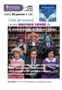 Suite au succès du premier club de lecture lancé en septembre dernier, la bibliothèque propose un nouveau cercle de lecture. Rendez-vous dès le mardi 28 janvier à 18h. Il s’agira cette fois de décerner le prix « mauvais genre » des lecteurs de la bibliothèque du Puy. A partir d’une sélection de titres, lisez, comparez, défendez votre chouchou et partagez vos avis. N’hésitez plus et rejoignez ce nouveau groupe qui débattra avec talent et bonne humeur des genres parfois mal aimés de la littérature : satire, burlesque, BD, anticipation…
