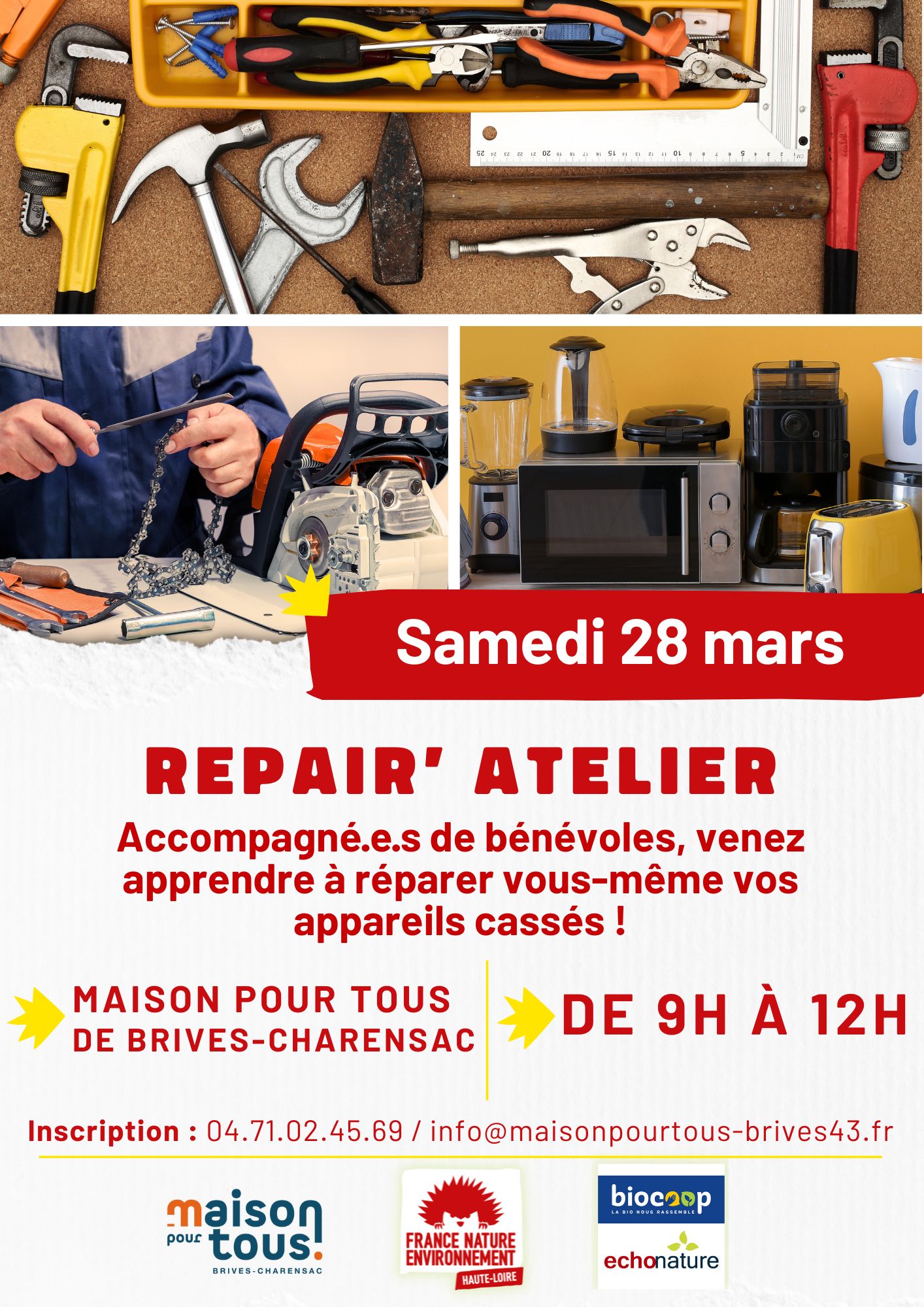 Samedi 28 mars 2026 de 9h à 12h, à la Maison pour tous (MPT) de Brives-Charensac.