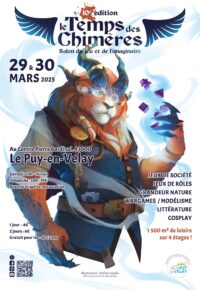 Le Temps des Chimères 2025 est le Salon du jeu et de l’imaginaire 🎲 du Puy-en-Velay (Haute-Loire, Auvergne). À moins de deux heures de Lyon et Clermont-Ferrand, 1h de Saint-Etienne, c’est un weekend ludique à ne pas manquer. Ce festival des jeux 2025, qui pourrait s’apparenter à une Convention ludique mêlée d’imaginaire, se déroule chaque année sur un week-end en mars ou avril.