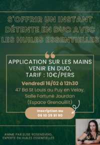 En duo, vous apprendrez à offrir et recevoir un doux moment de détente avec les huiles essentielles, que tu pourras reproduire facilement à la maison !