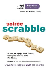 Mardi 19 mars à 18h30 : SOIRÉE SCRABBLE dès 12 ans
