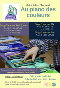 Envie de créativité et de couleurs ? Le Piano des Couleurs à Saint-Julien-Chapteuil propose des stages de peinture pour enfants dès 3 ans !